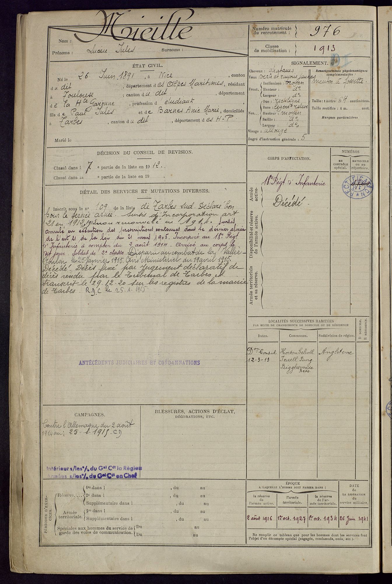 La Grande Guerre a durement touché la famille Mieille. La correspondance tenue par Lucien nous permet d'appréhender son parcours durant cette période difficile.