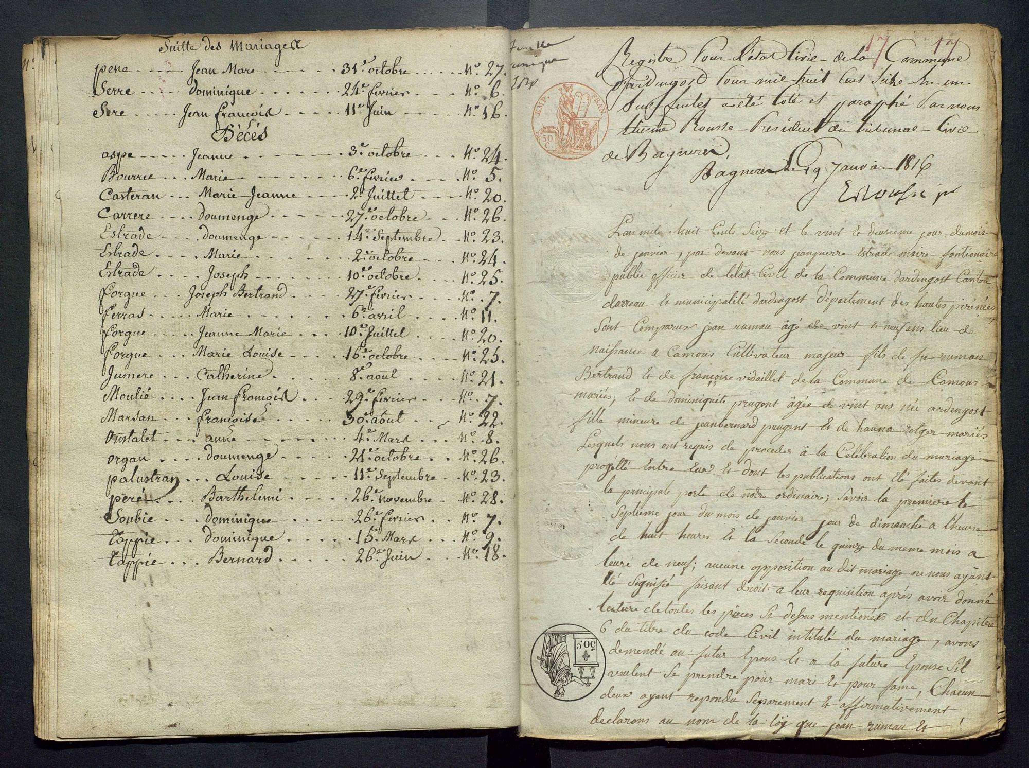 La tranche 1836-1855 de l'arrondissement de Bagnères-de-Bigorre en ligne ! 130 registres d'état civil mis en ligne Un nouveau lot d’images est aujourd’hui accessible relatif à la tranche chronologique 1836-1855 de l’arrondissement de Bagnères-de-Bigorre. Bonnes recherches !
