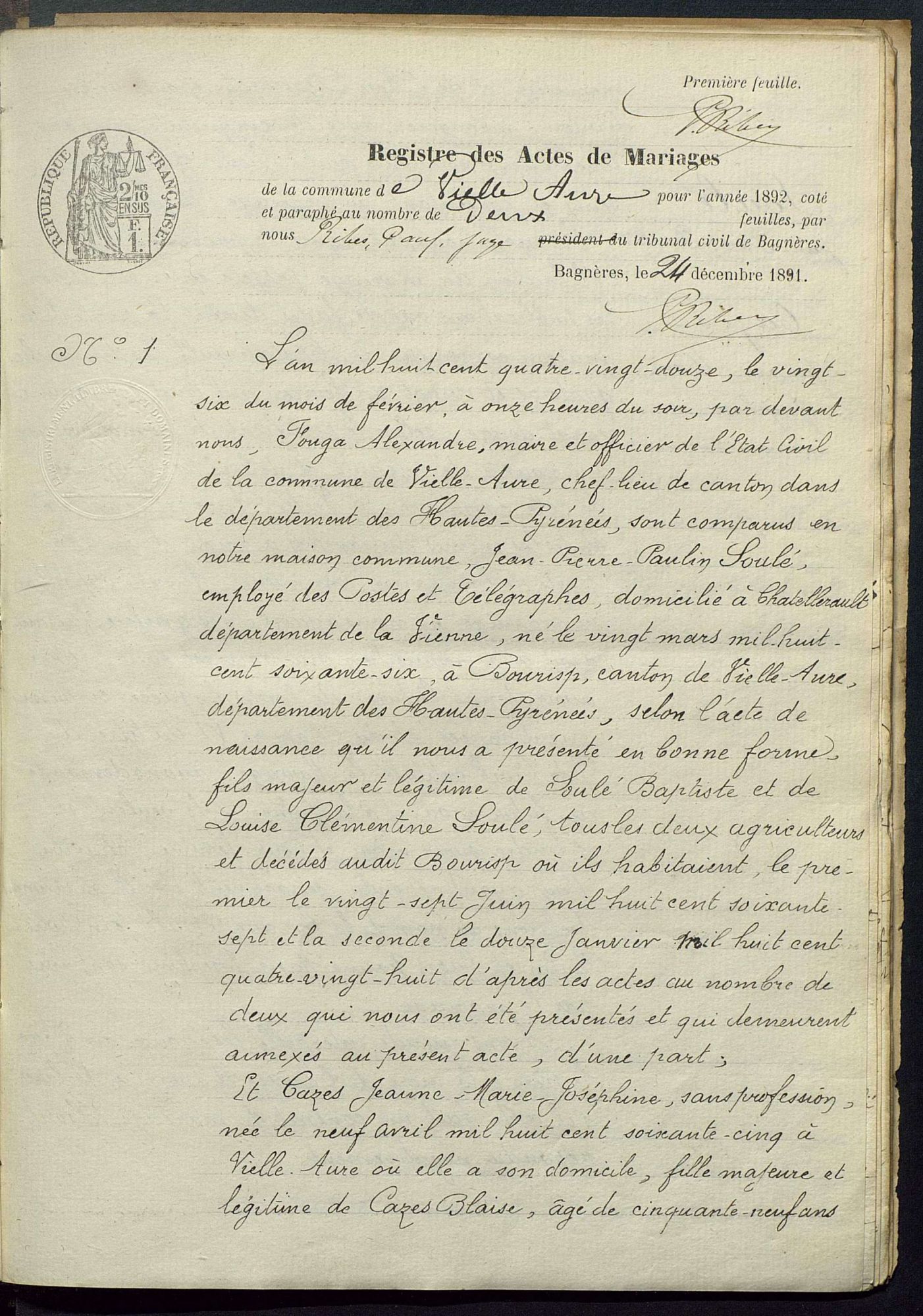 Le dernier lot d'images de l'arrondissement de Bagnères-de-Bigorre relatif à la tranche chronologique 1876-1892 est aujourd'hui accessible, soit 143 registres d'état civil.