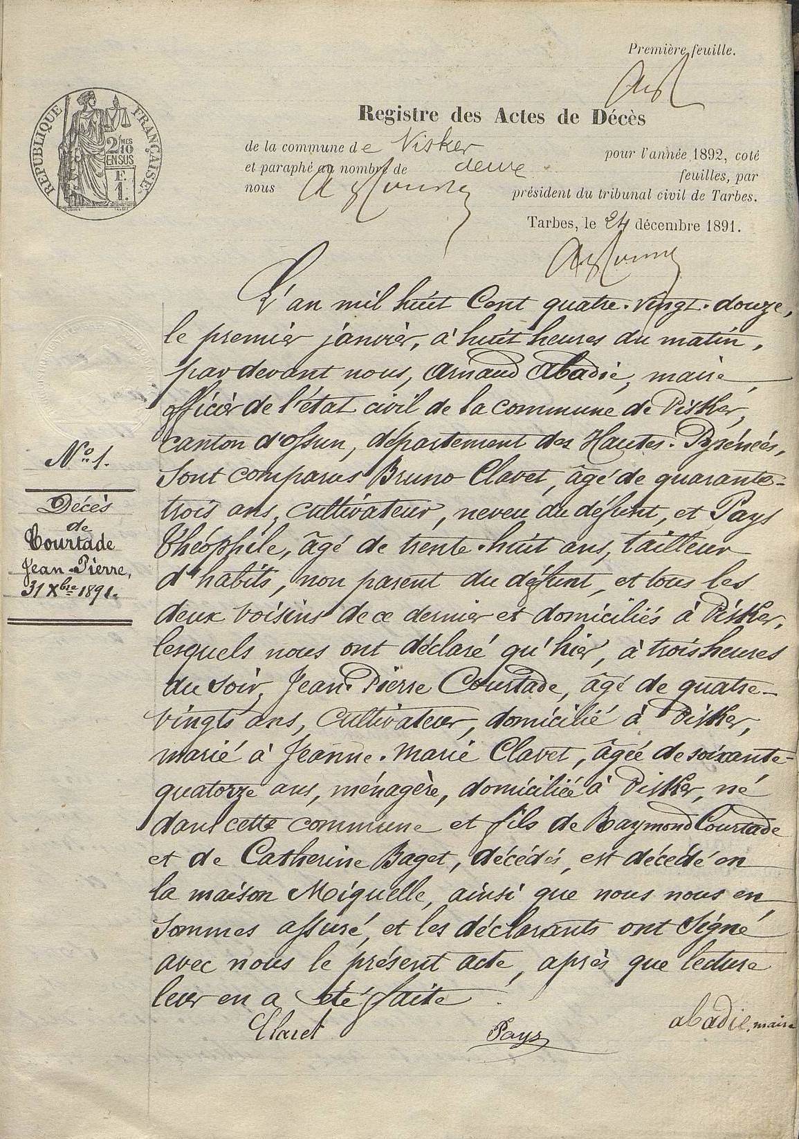 La dernière tranche chronologique 1876-1892 de l’arrondissement de Tarbes est désormais en ligne et met fin à la campagne de numérisation de la collection départementale de l'état civil des Hautes-Pyrénées.