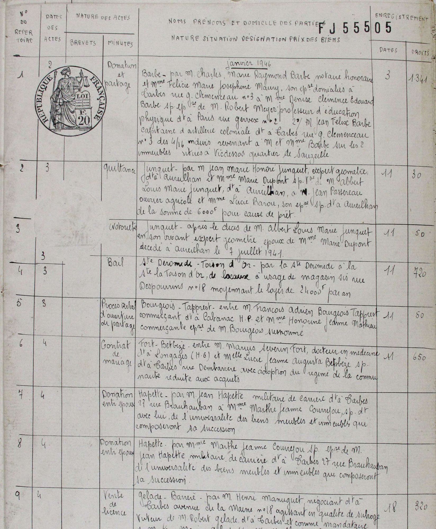 A compter de 1791, le notaire a obligation de tenir deux répertoires de ses actes. L’un d’entre eux est versé au greffe du Tribunal de première instance puis d’instance de son arrondissement. Ce sont ces exemplaires qui ont fait l'objet d'un classement et dont l'inventaire est aujourd'hui accessible en ligne.