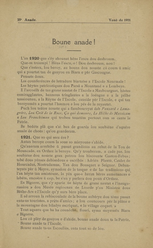C’est ainsi que la Revue Reclams débutait les vœux de bonne année qu’elle adressait à ses lecteurs en 1921. Les années passent et bien des choses changent. Un siècle plus tard, l’euphorie d’une fin de guerre fait place à la morosité d’une pandémie et d’un confinement.
